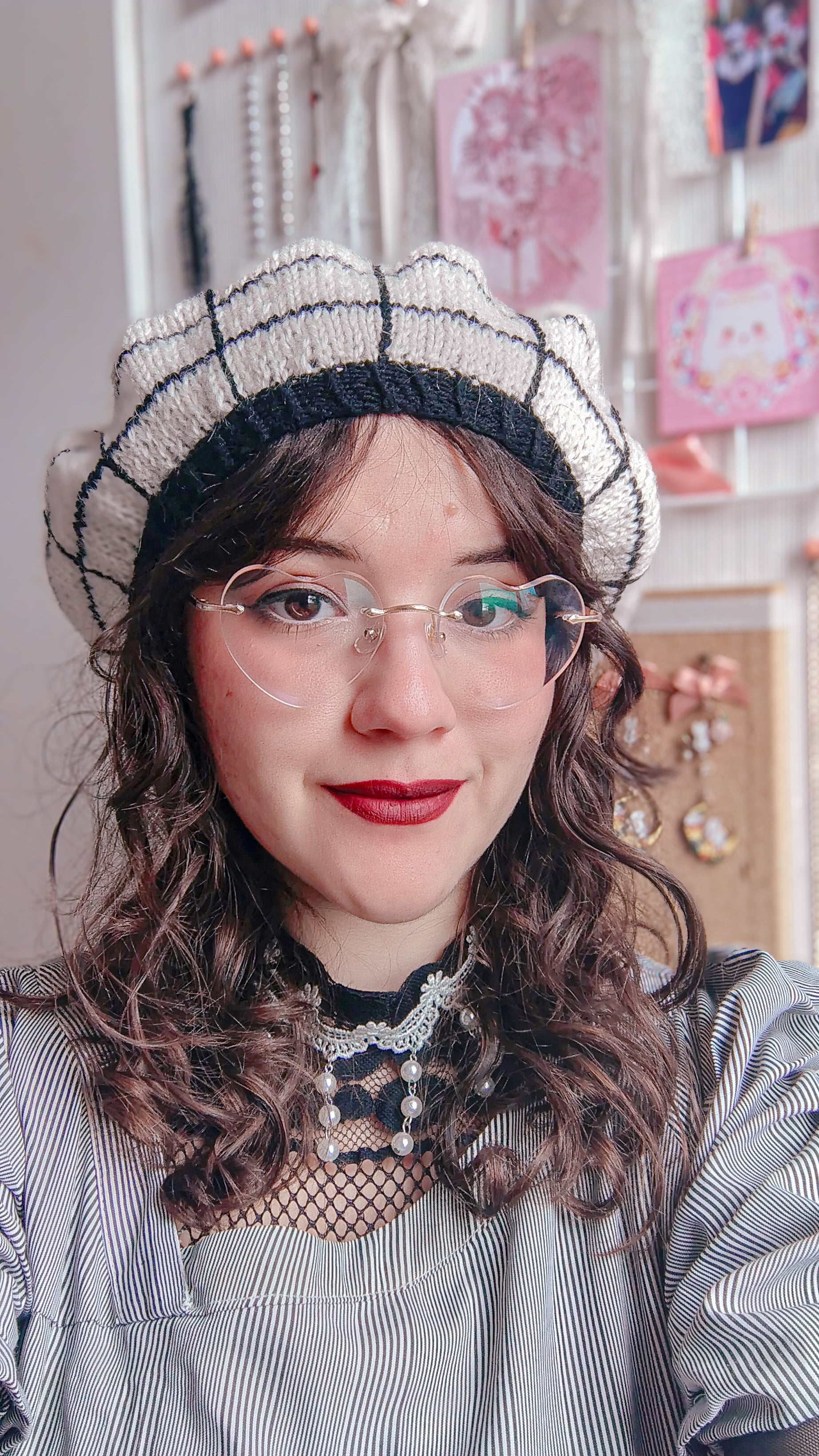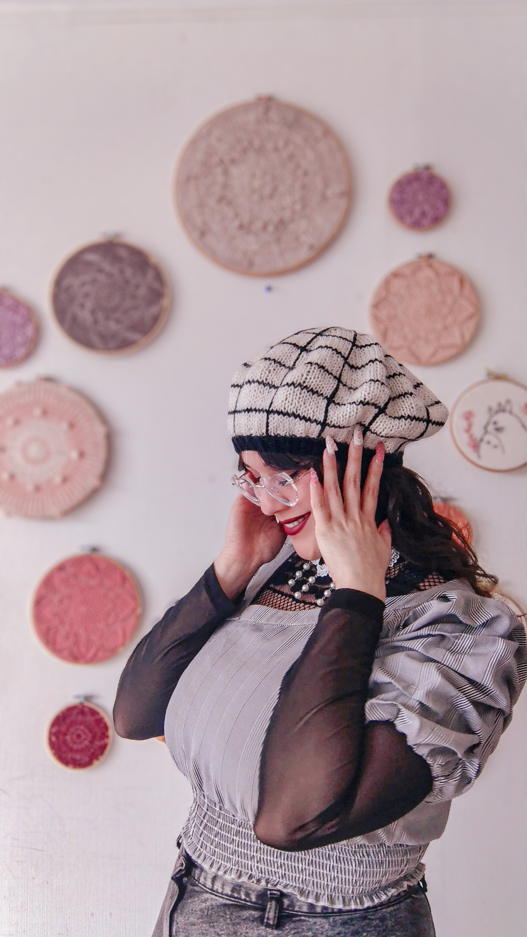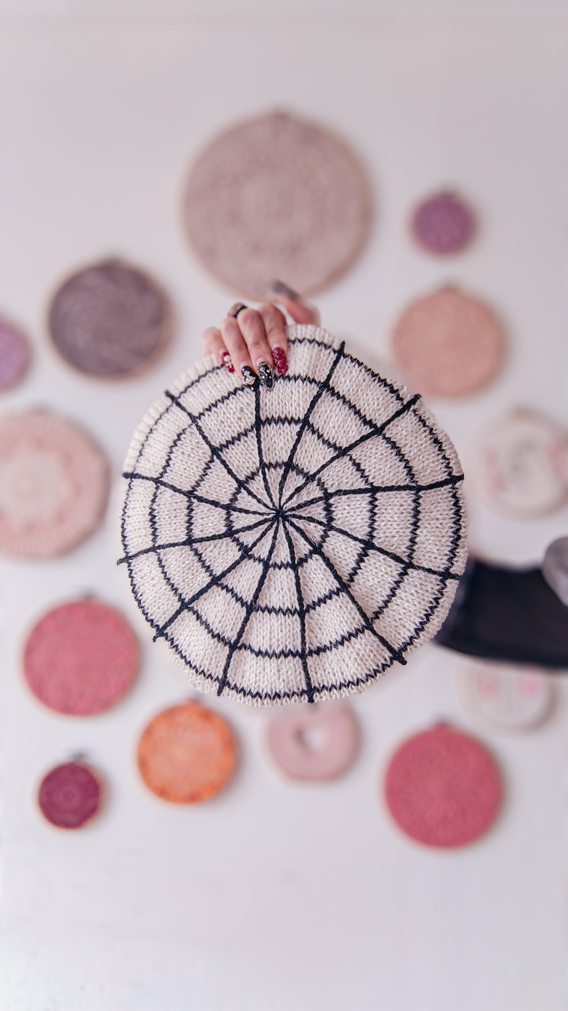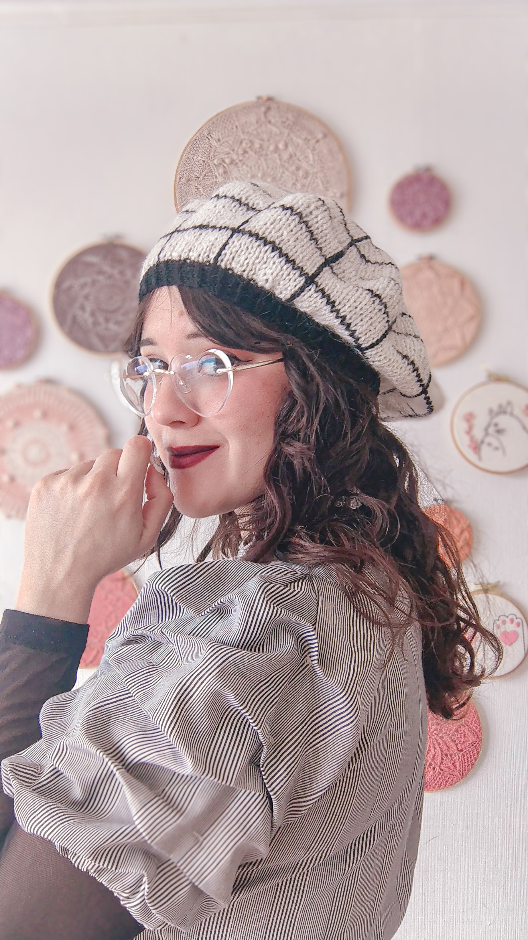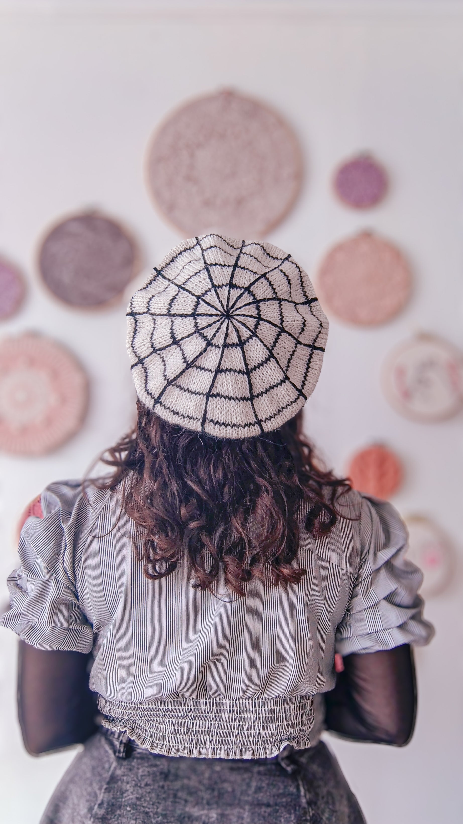 Esta boina surgió de forma accidental mientras estaba intentando crear un diseño de cuadrícula, al coser las líneas verticales me di cuenta de que parecía una telaraña.