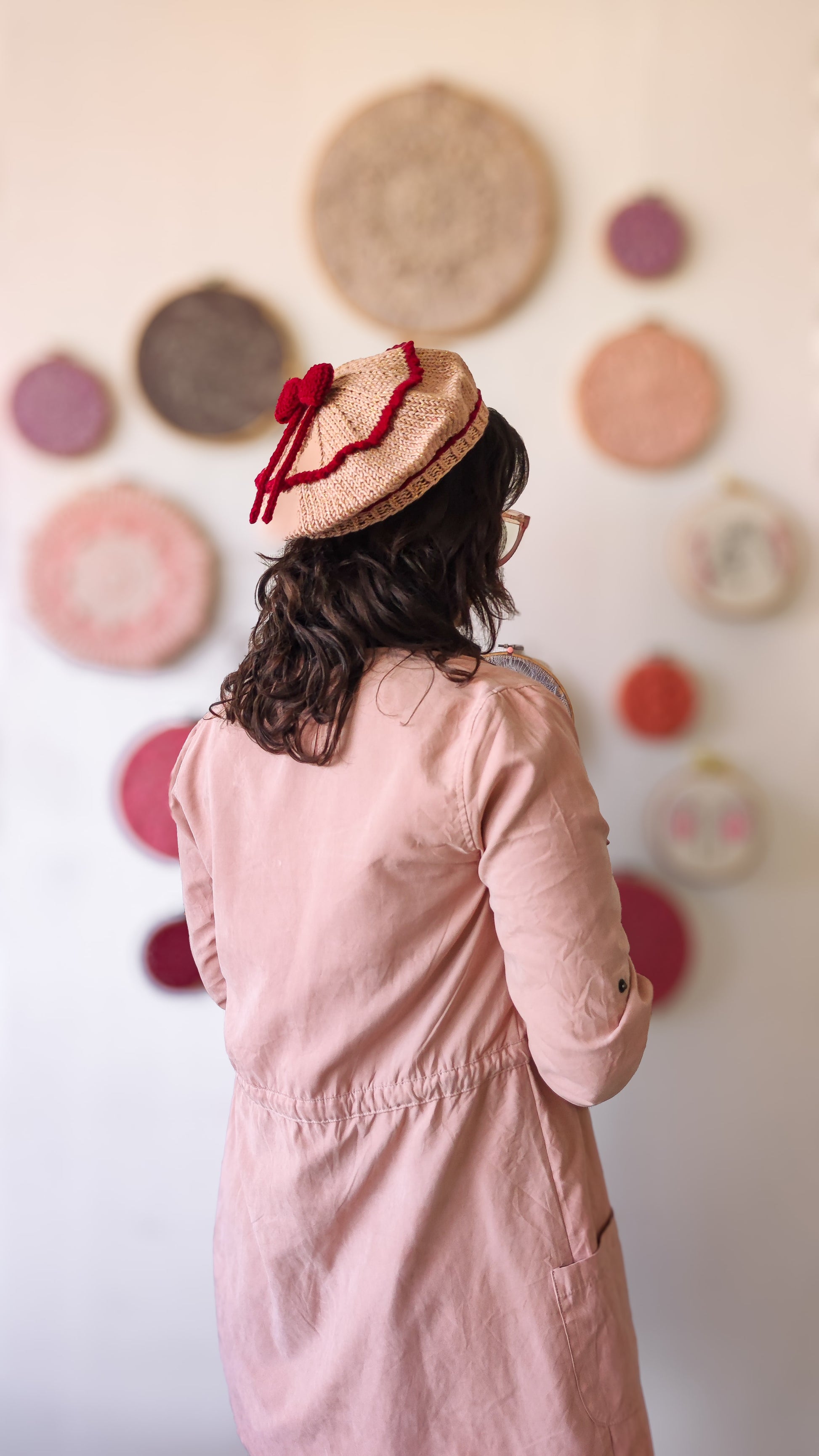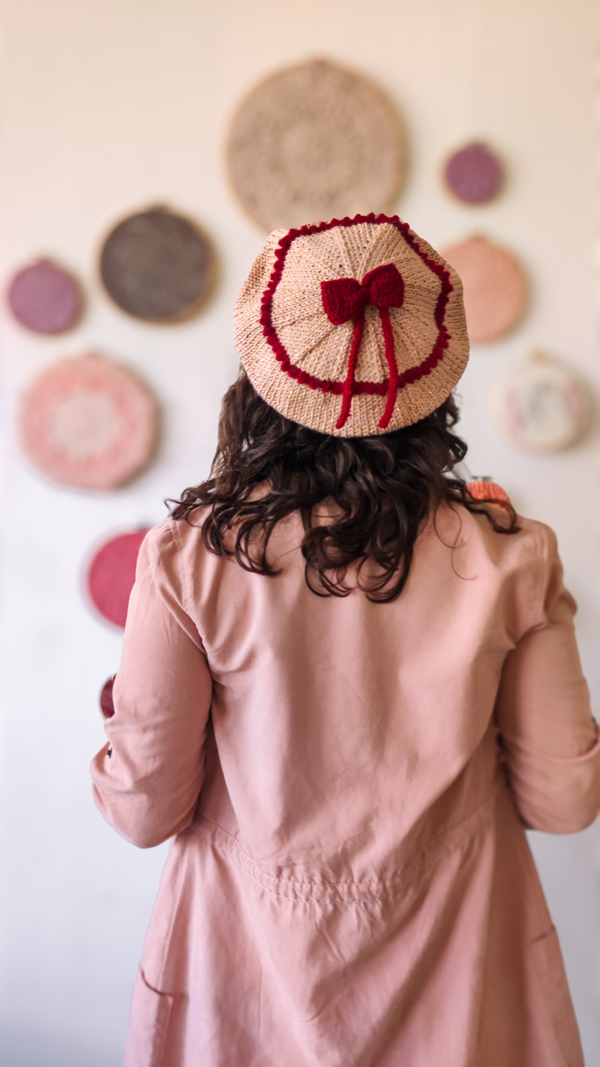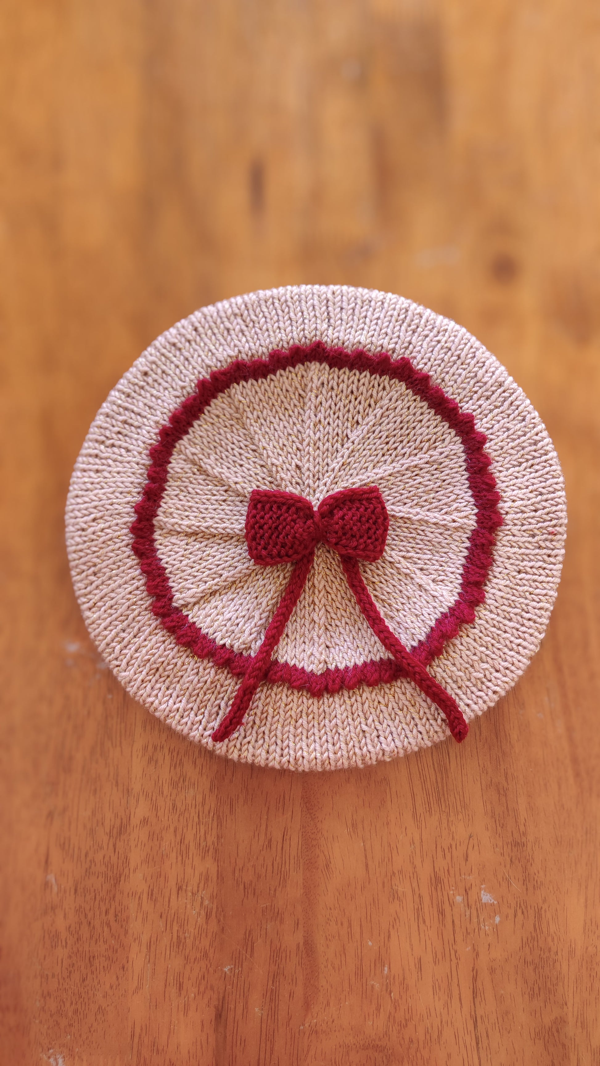 Se cierra con disminuciones simples y se decora con un lacito tejido.