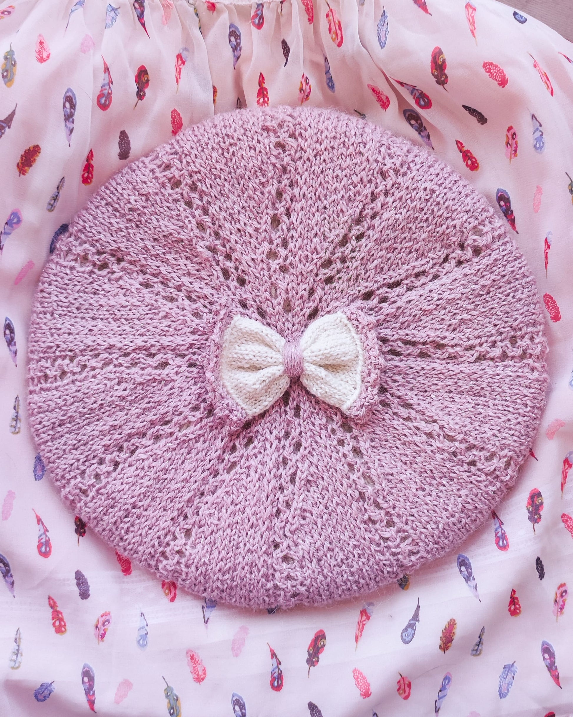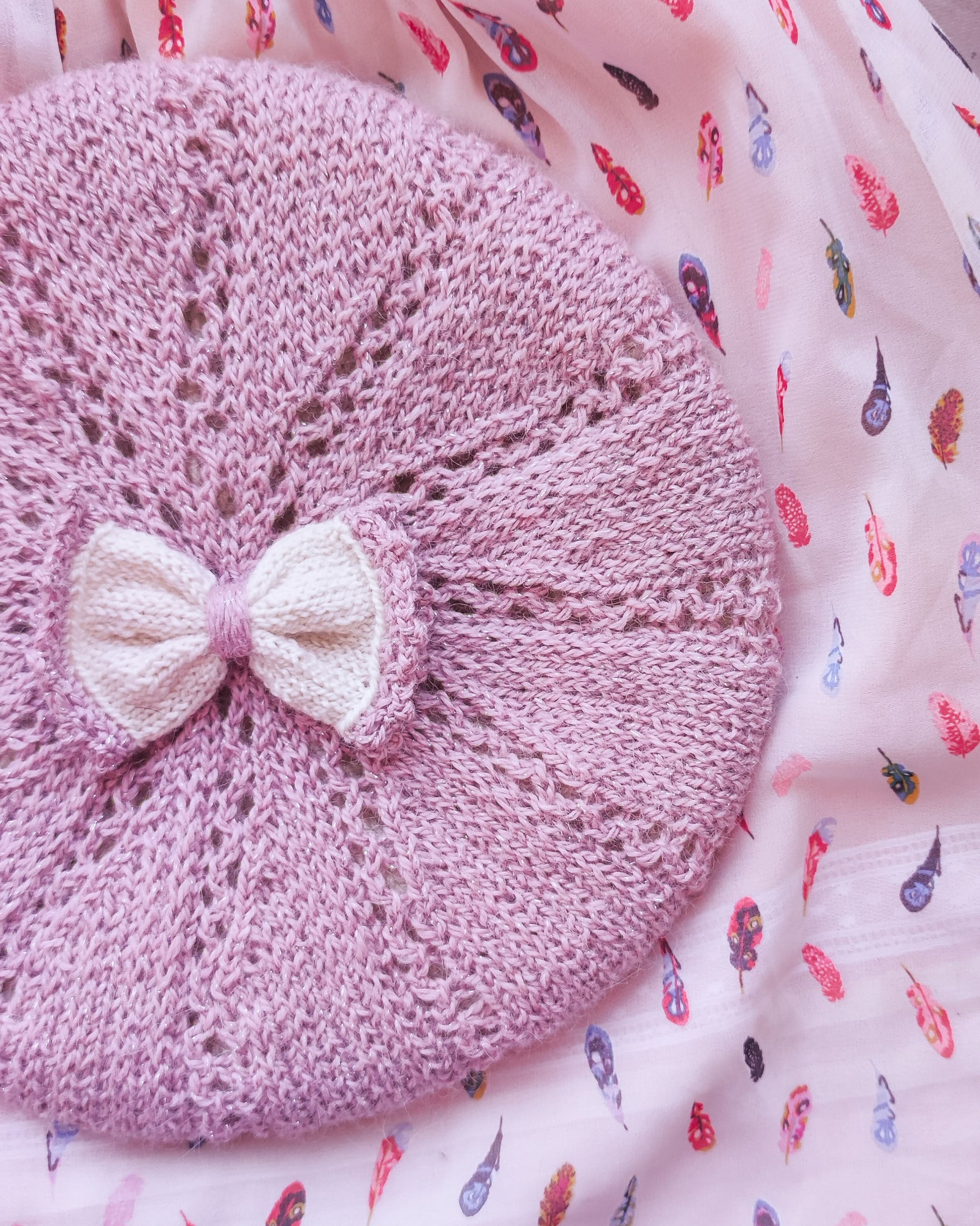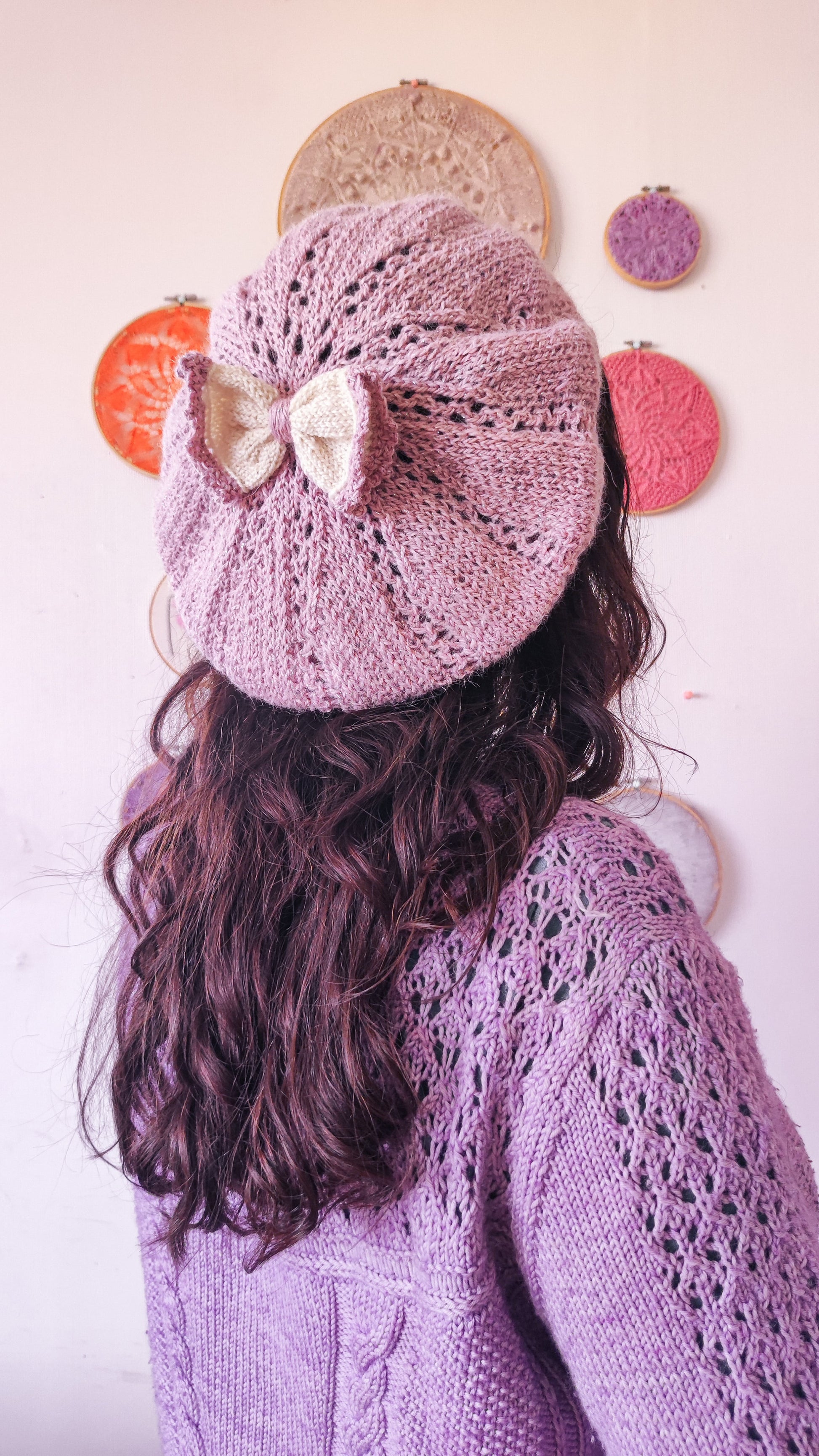 Esta boina está inspirado en el caparazón de un erizo de mar, quise representar el hermoso diseño que tienen. El lazo es opcional pero fue agregado con la idea de obtener un look más femenino.